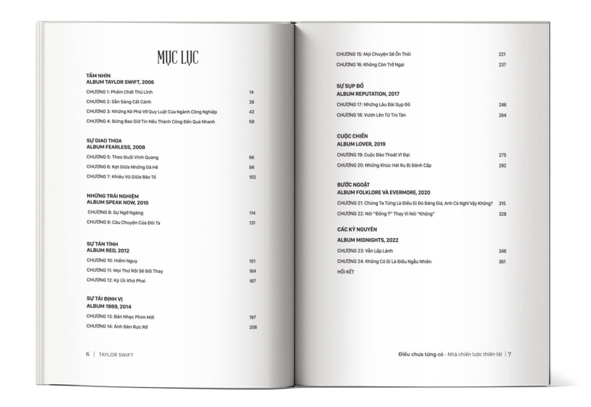 Mục lục của cuốn sách Taylor Swift - Điều chưa từng có, nhà chiến lược thiên tài